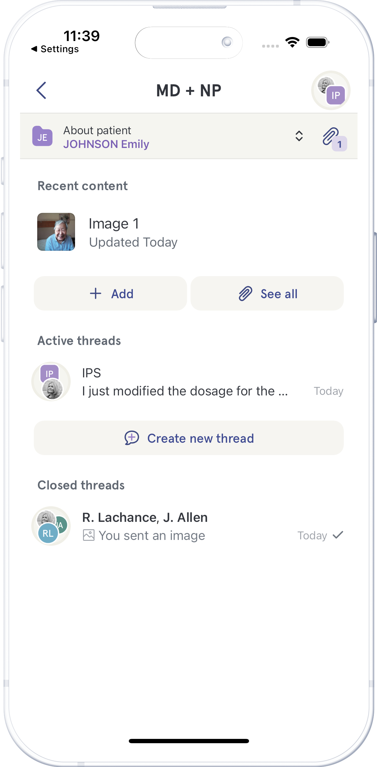 Confidently take over from your colleagues thanks to shared access to your team's discussion threads. Continuity of care begins within your team itself.