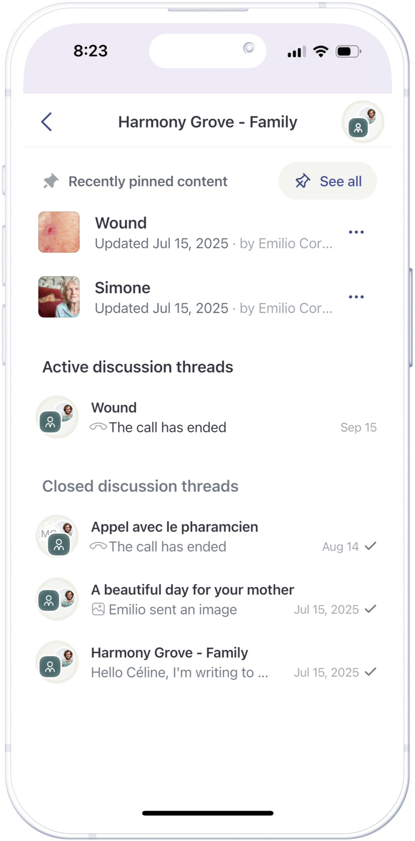 Confidently take over from your colleagues thanks to shared access to your team's discussion threads. Continuity of care begins within your team itself.