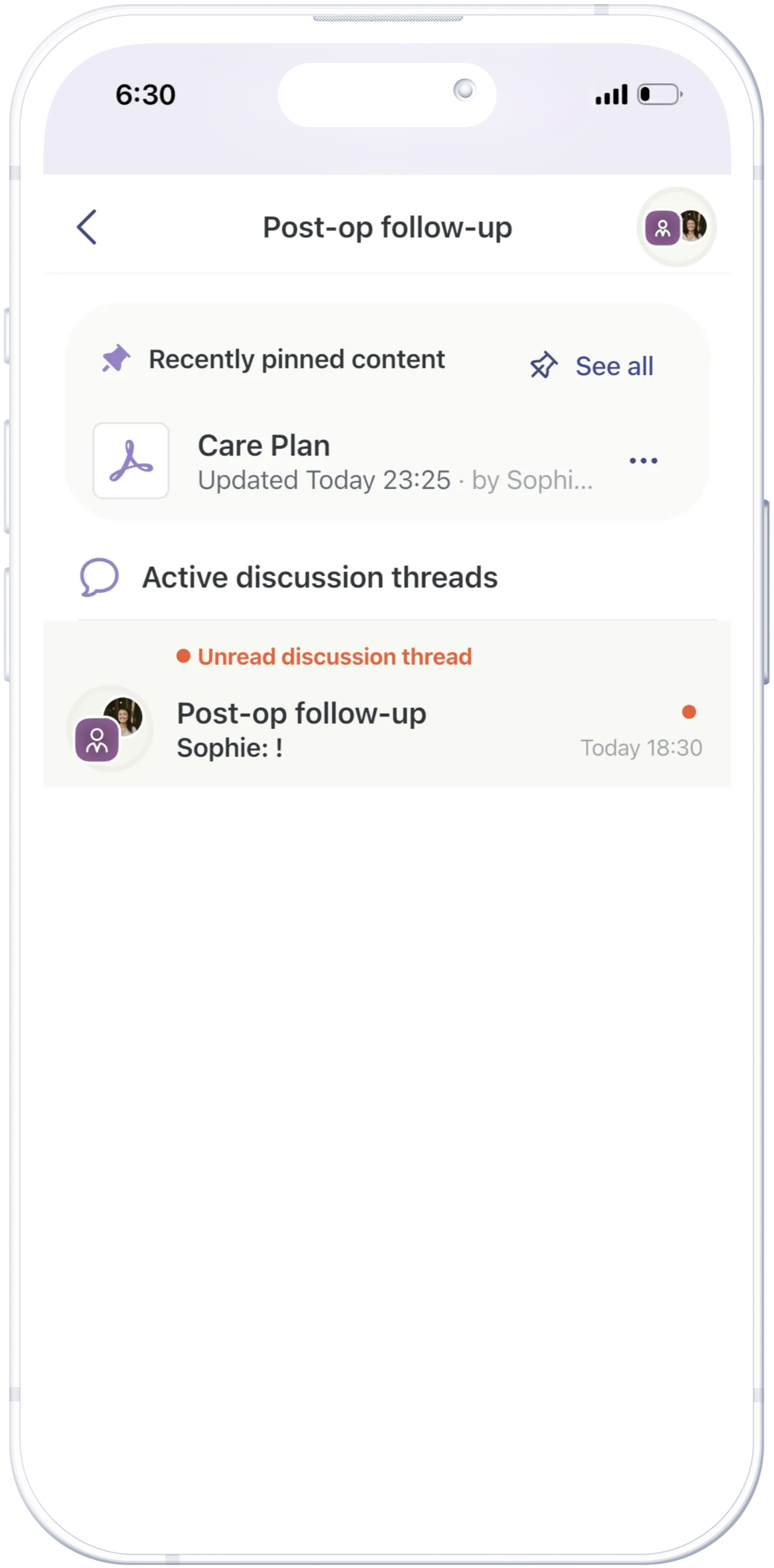 Stay informed and communicate with your care team as easily as in your personal life: messages, photos, videos, calls, and documents.