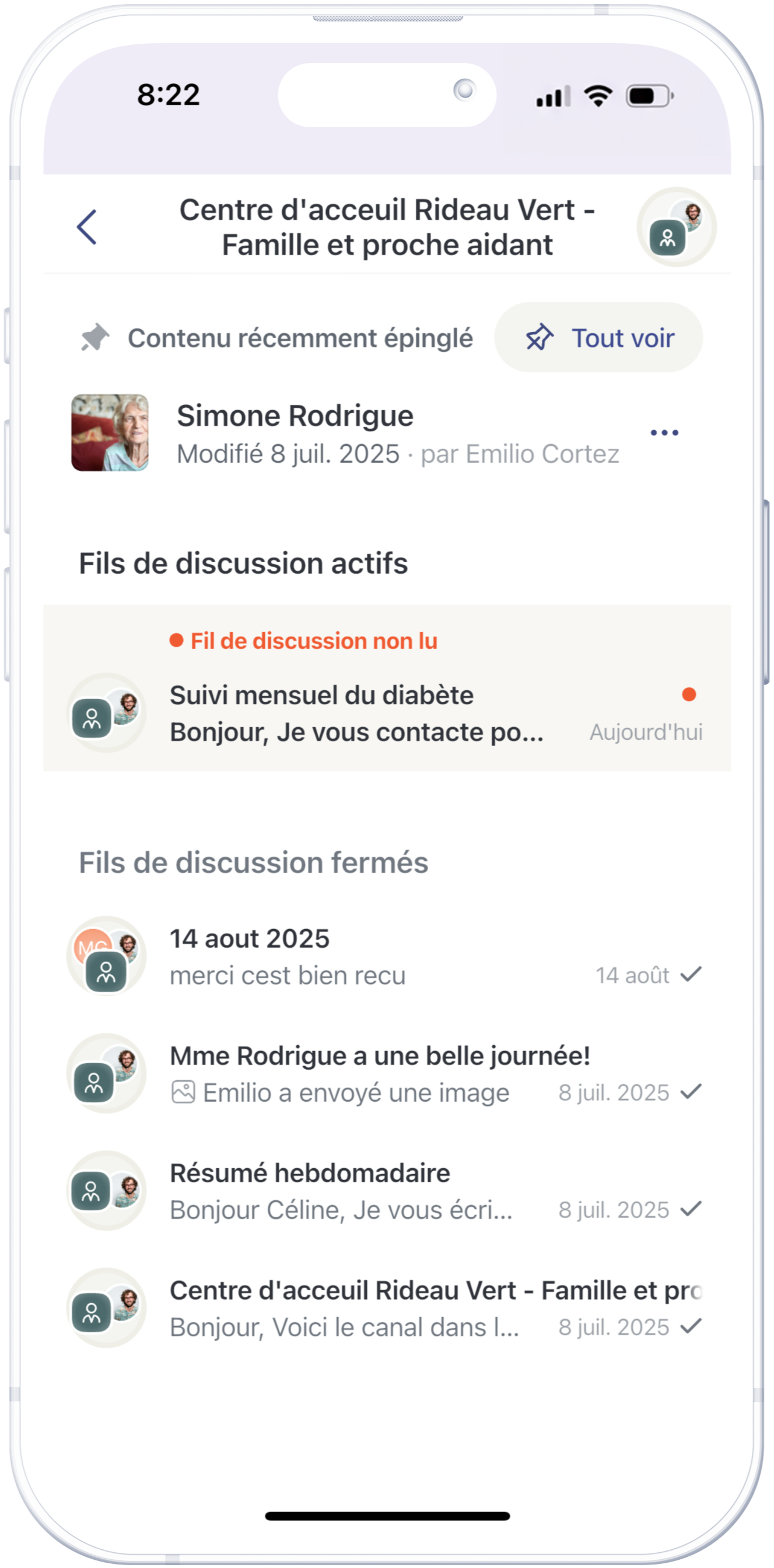 Échangez des messages textuels ou vocaux. Faites remplir ou signer des documents. Faites des appels audios ou vidéos retranscrits en notes cliniques.